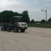 Die Vorbereitung des Baugrundes, das Einbringen von Trag- und Trennschicht, sowie das Aufbringen des Reitsandes erfolgt exact und zeitsparend mit einem lasergesteuerten Planierschild.